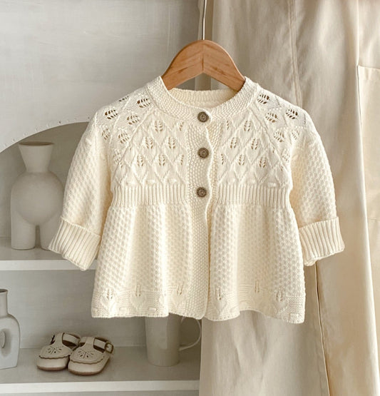 Baby Doll Knit Cardigan with Openwork Detail- CLEARANCE
