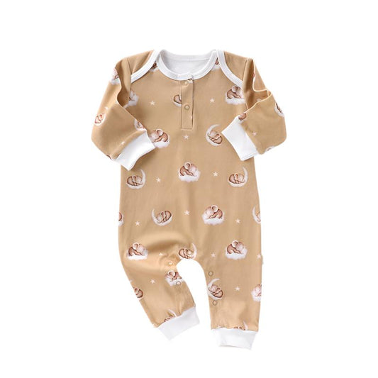 Long Sleeve Cotton Henley Romper | Moon Elephant- CLEARANCE