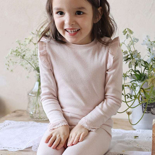 Long-Sleeve Flutter Ribbed Tee for Girls- CLEARANCE
