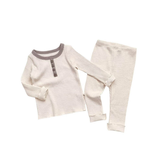 Ribbed Cotton Two-Piece Pajama Set - Henley Top- CLEARANCE