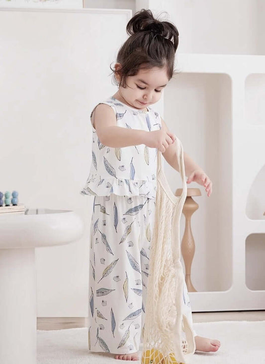 Bamboo Fiber Girls' Short-sleeved Wide-leg Pants Set- CLEARANCE
