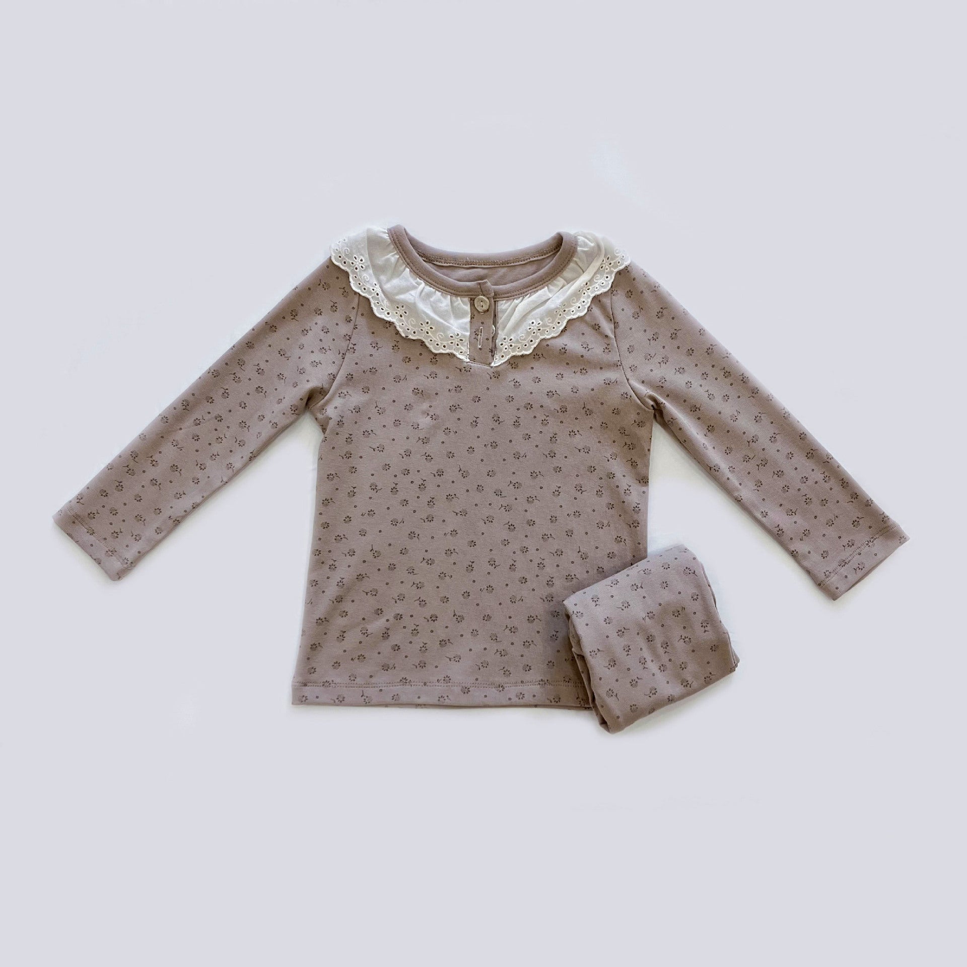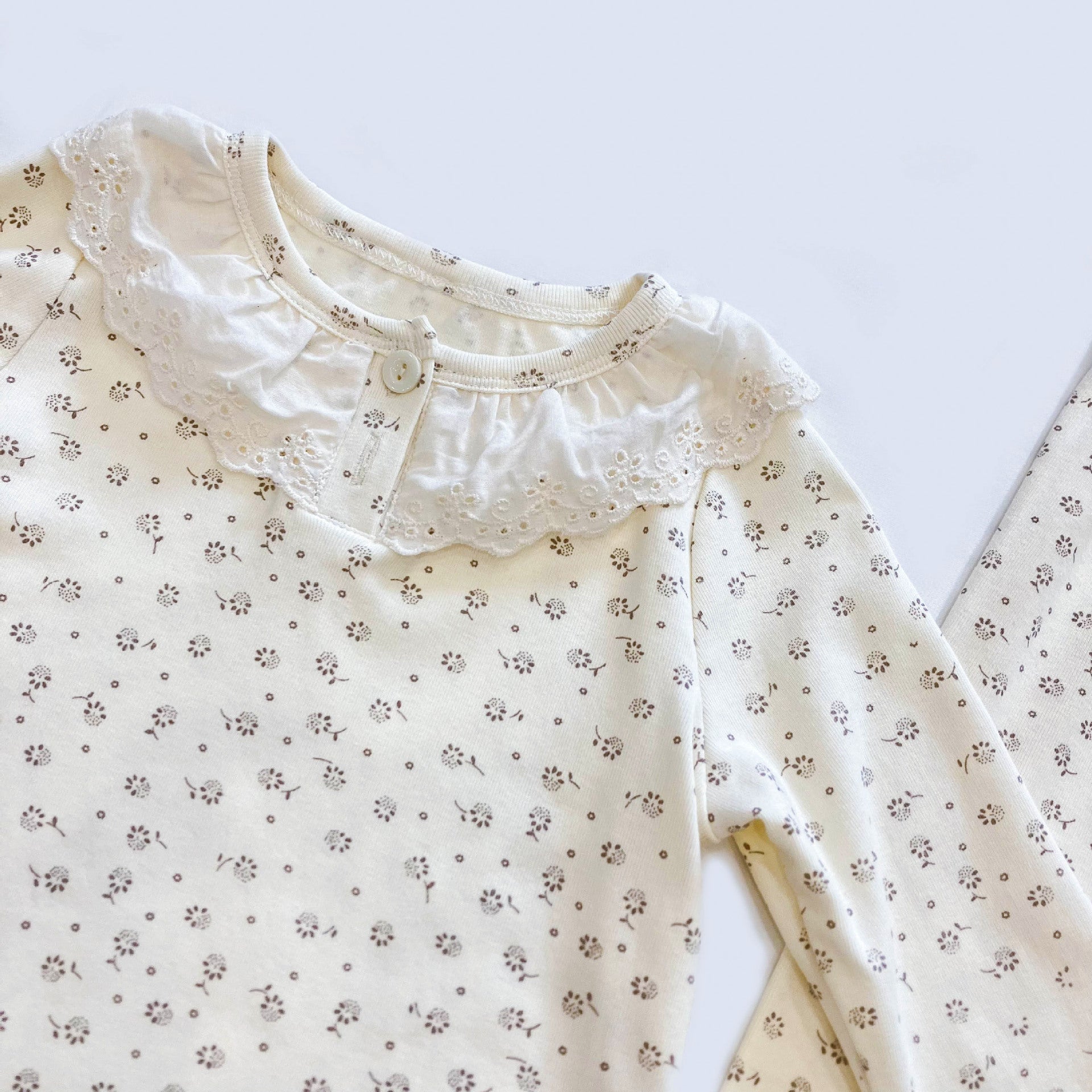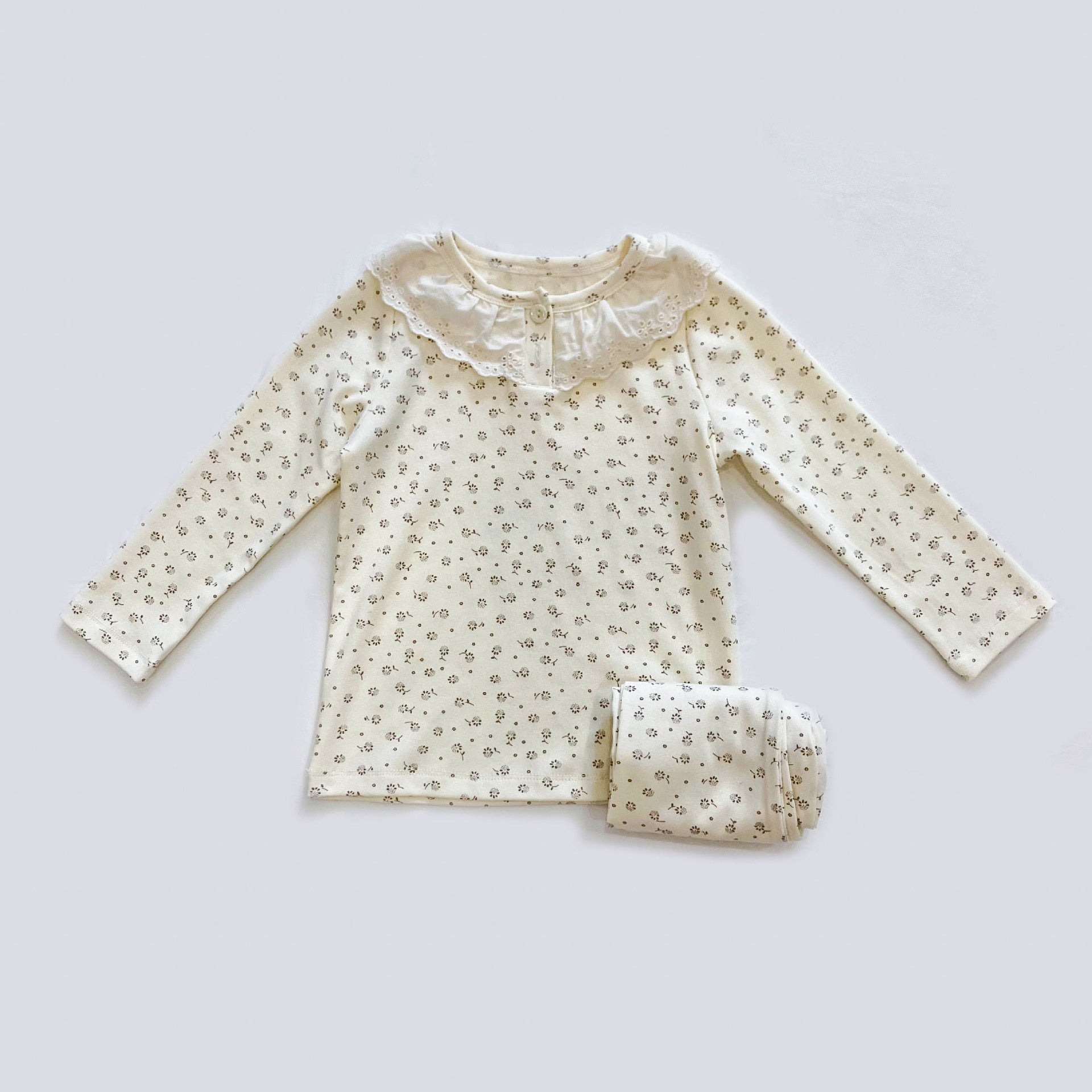 Keep your little one cozy and stylish with this 2-piece cotton pajama set. Featuring a long-sleeve top with delicate lace trim around the neck and matching tights, this set is as adorable as it is comfortable. Available in two charming colors, this 100% cotton set is perfect for bedtime or lounging around.