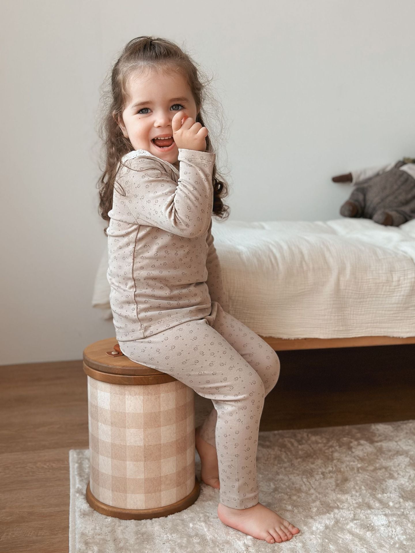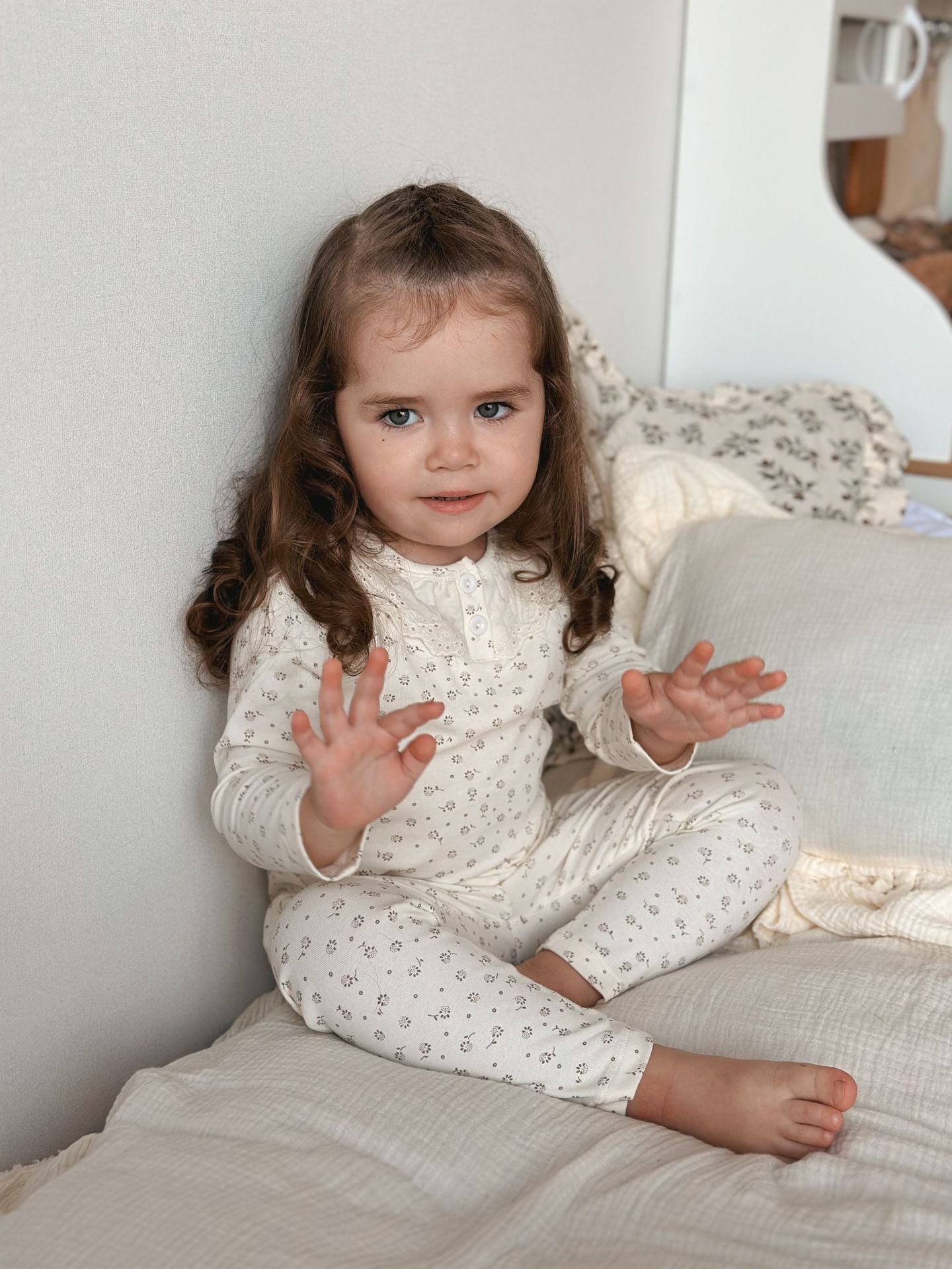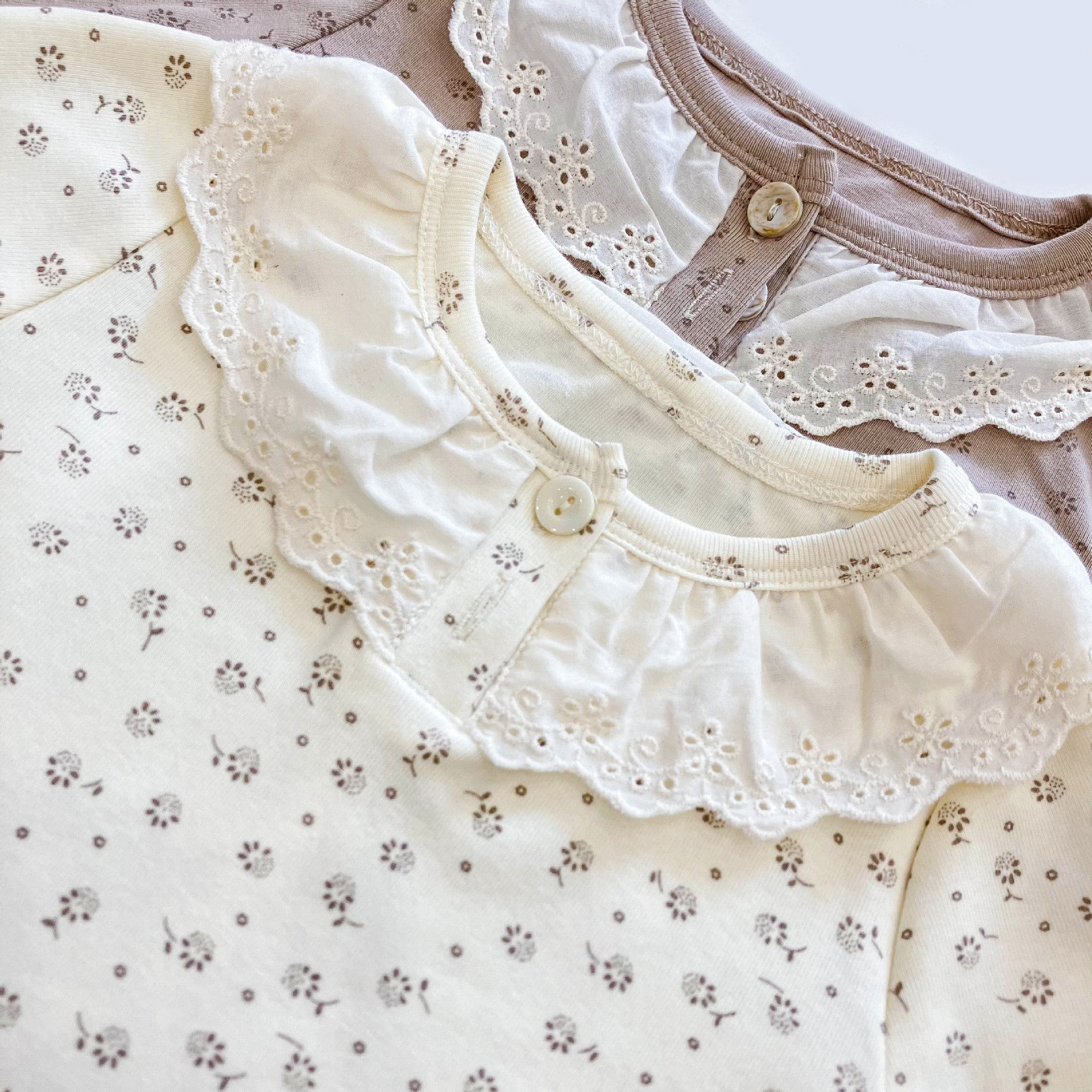 Keep your little one cozy and stylish with this 2-piece cotton pajama set. Featuring a long-sleeve top with delicate lace trim around the neck and matching tights, this set is as adorable as it is comfortable. Available in two charming colors, this 100% cotton set is perfect for bedtime or lounging around.