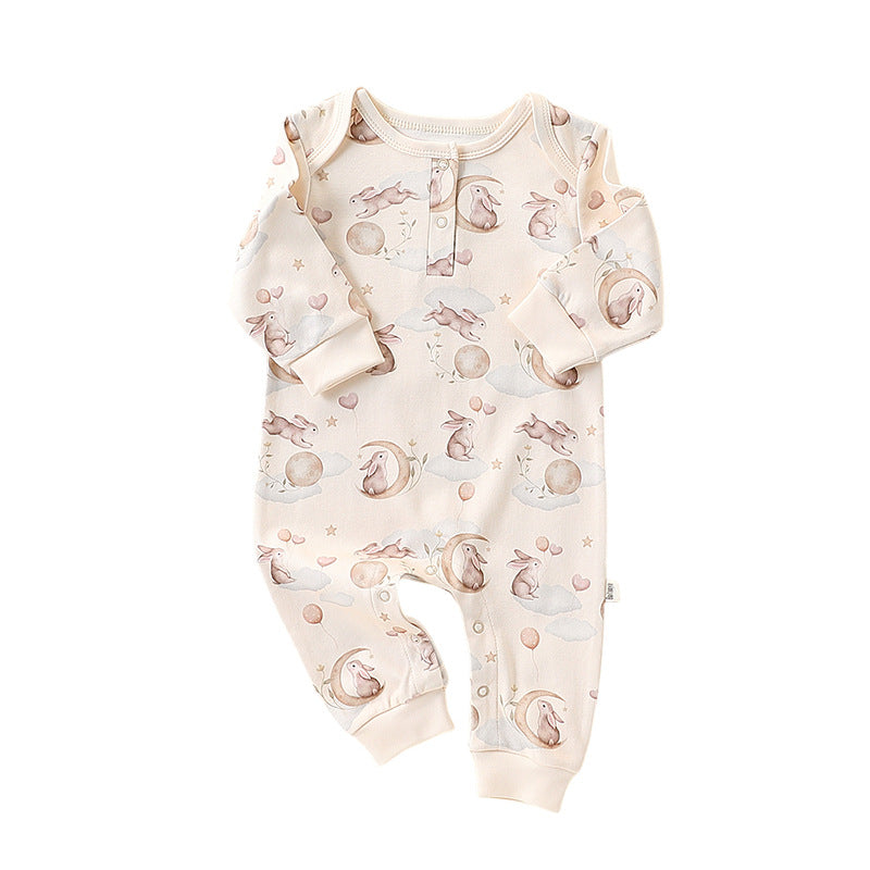 This romper features an adorable bunny print making it a magical addition to their wardrobe. Crafted with care from soft, breathable cotton, it's perfect for playtime or bedtime.