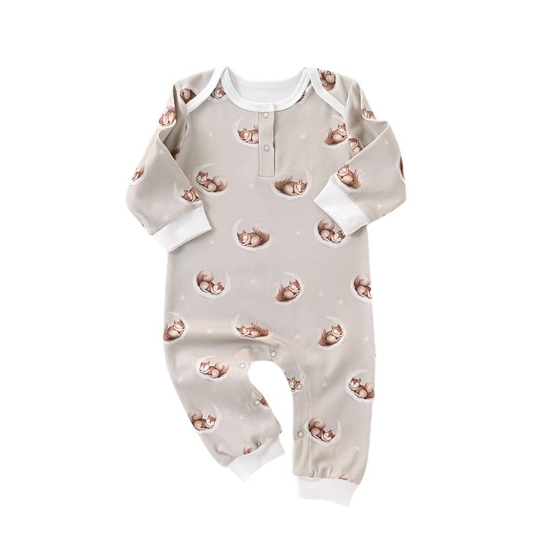 Long Sleeve Henley Romper | Moon Squirrel- CLEARANCE