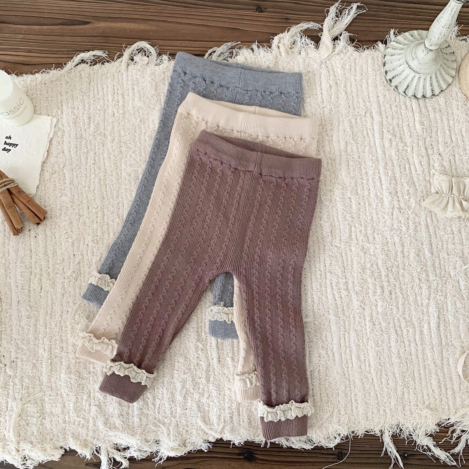 Available in 3 neutral colors, these classic cable knit leggings are adorable and the perfect versatile piece for every babys waredrobe.