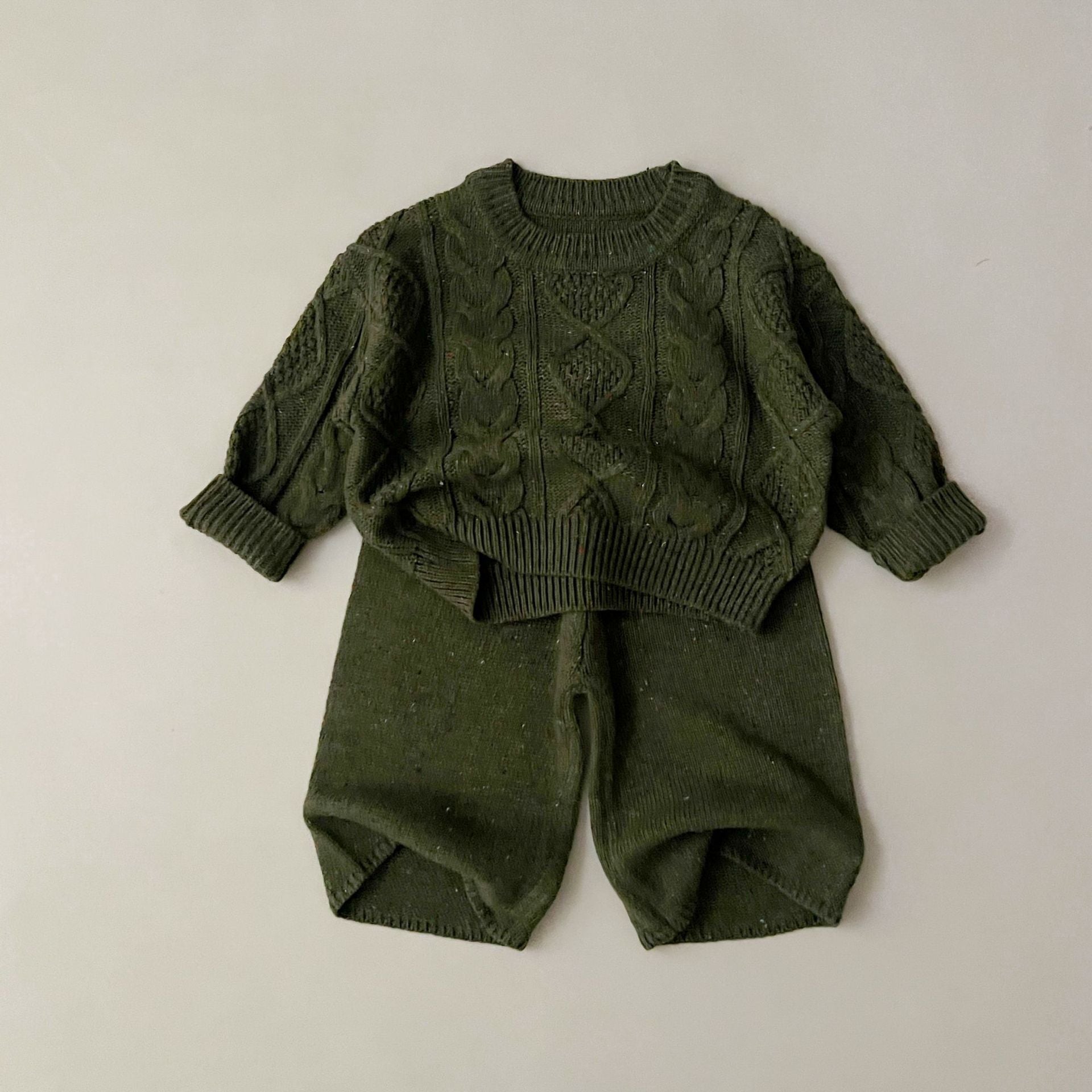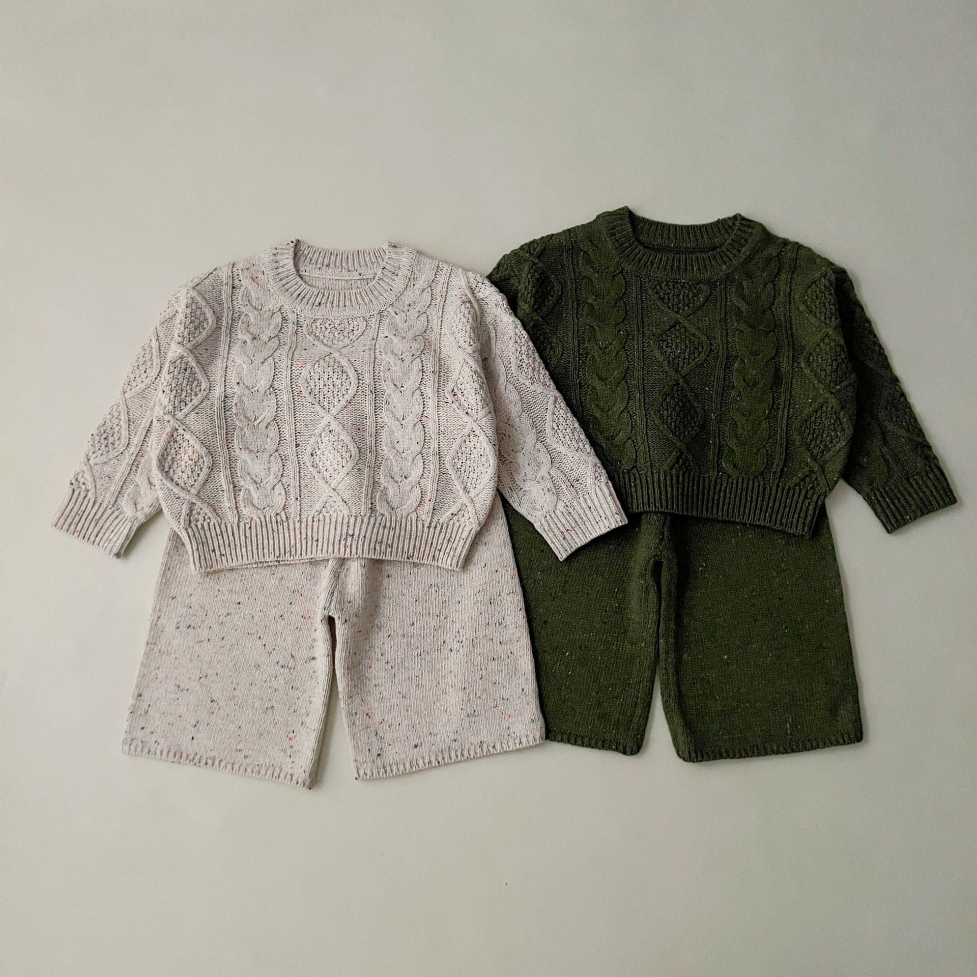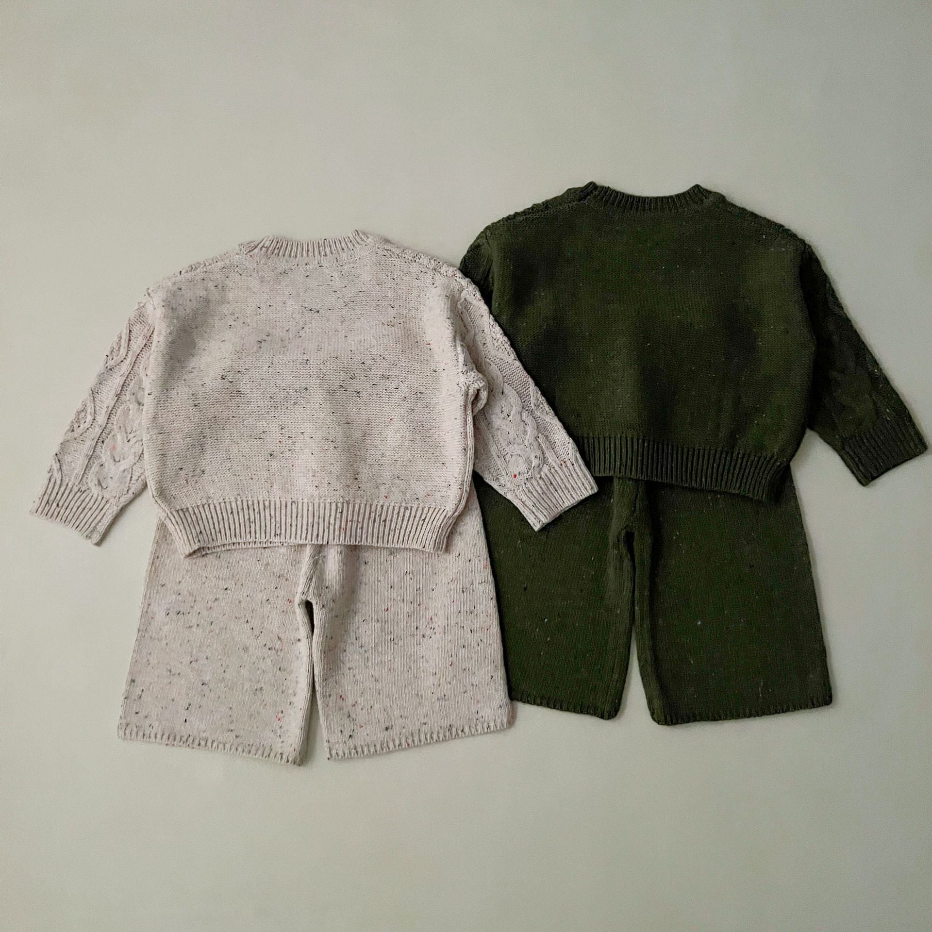 Wrap your little one in warmth and style with our cable knit sweater and matching wide-leg pants, crafted for comfort and charm. Available in two earthy tones, each piece is designed for mixing or matching to create the perfect outfit. Both sweater and pants are sold separately to allow flexibility in pairing.