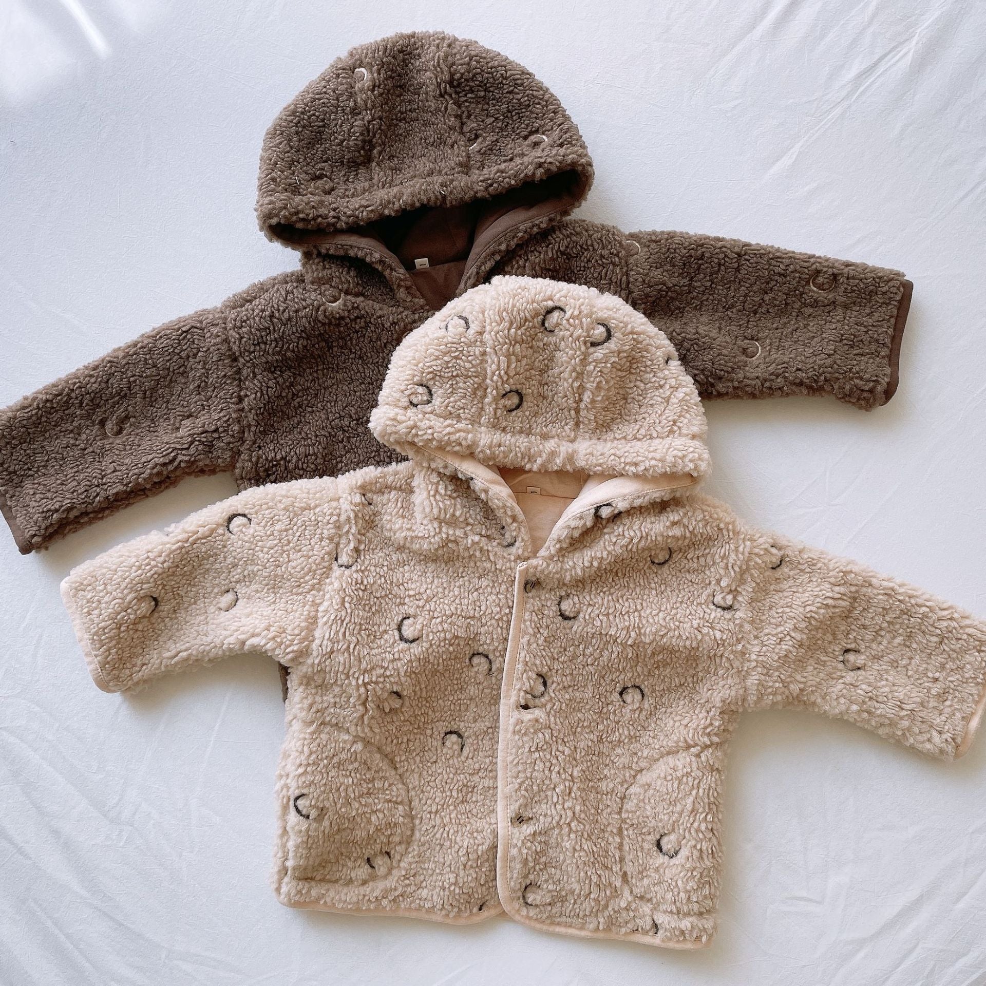 Crafted from soft and cozy sherpa, our Moon Child Sherpa Jacket features a hood for extra warmth on chilly days. The neutral color palette ensures it matches well with almost any outfit, making it a versatile addition to your child's wardrobe. The durable design and easy-care fabric ensure that this jacket will keep your little one snug and stylish throughout the colder seasons.