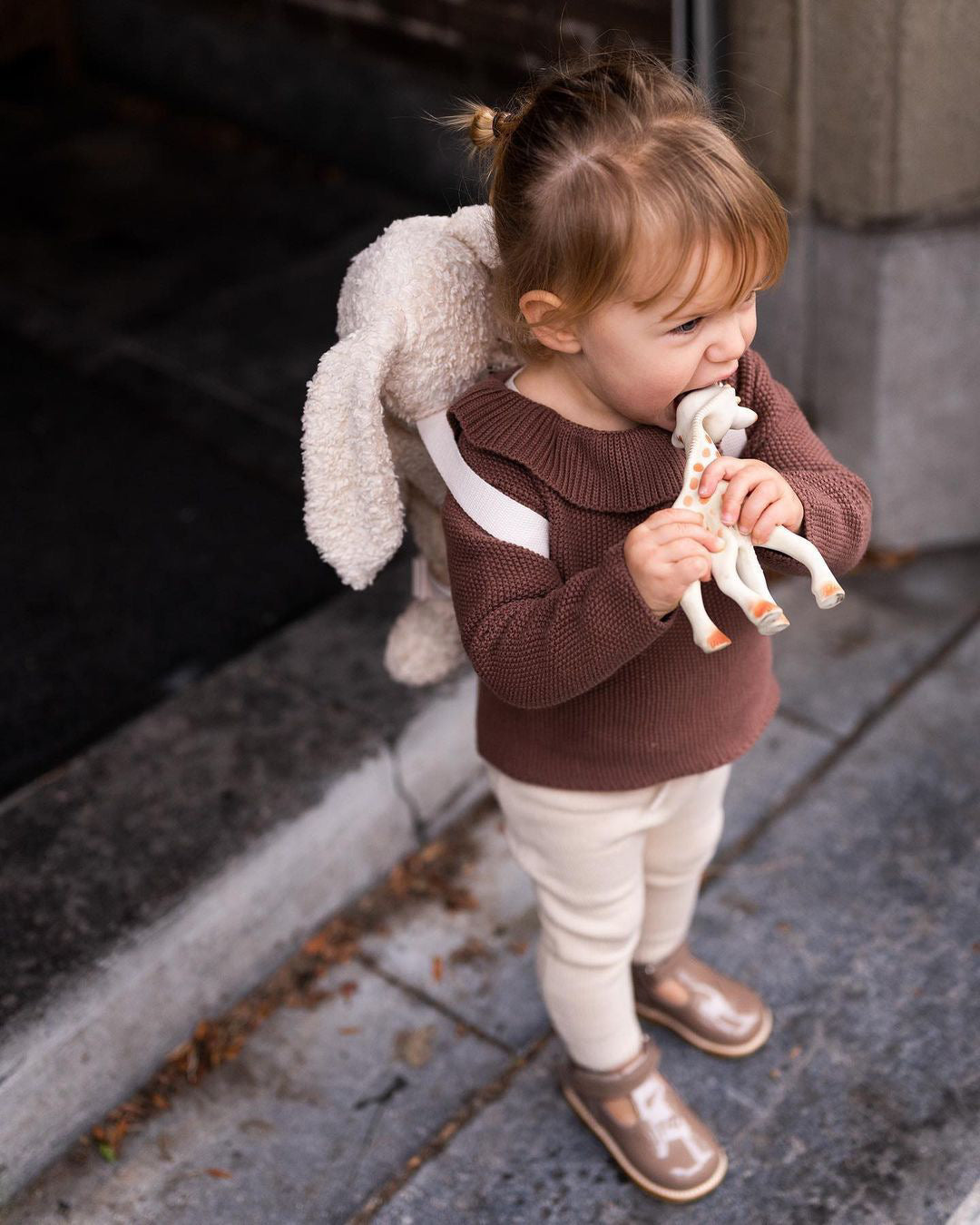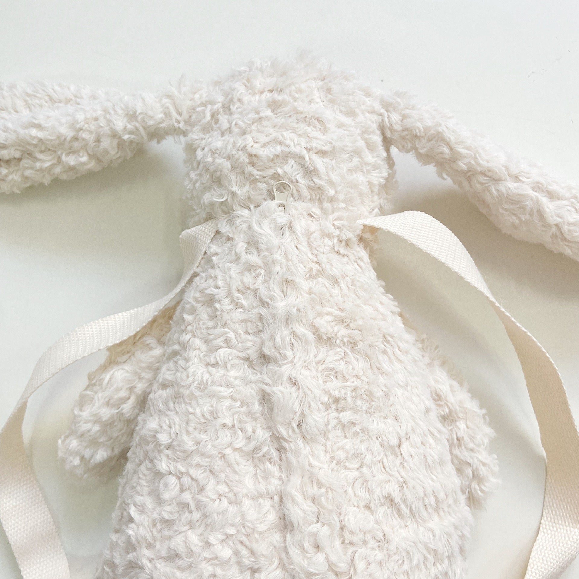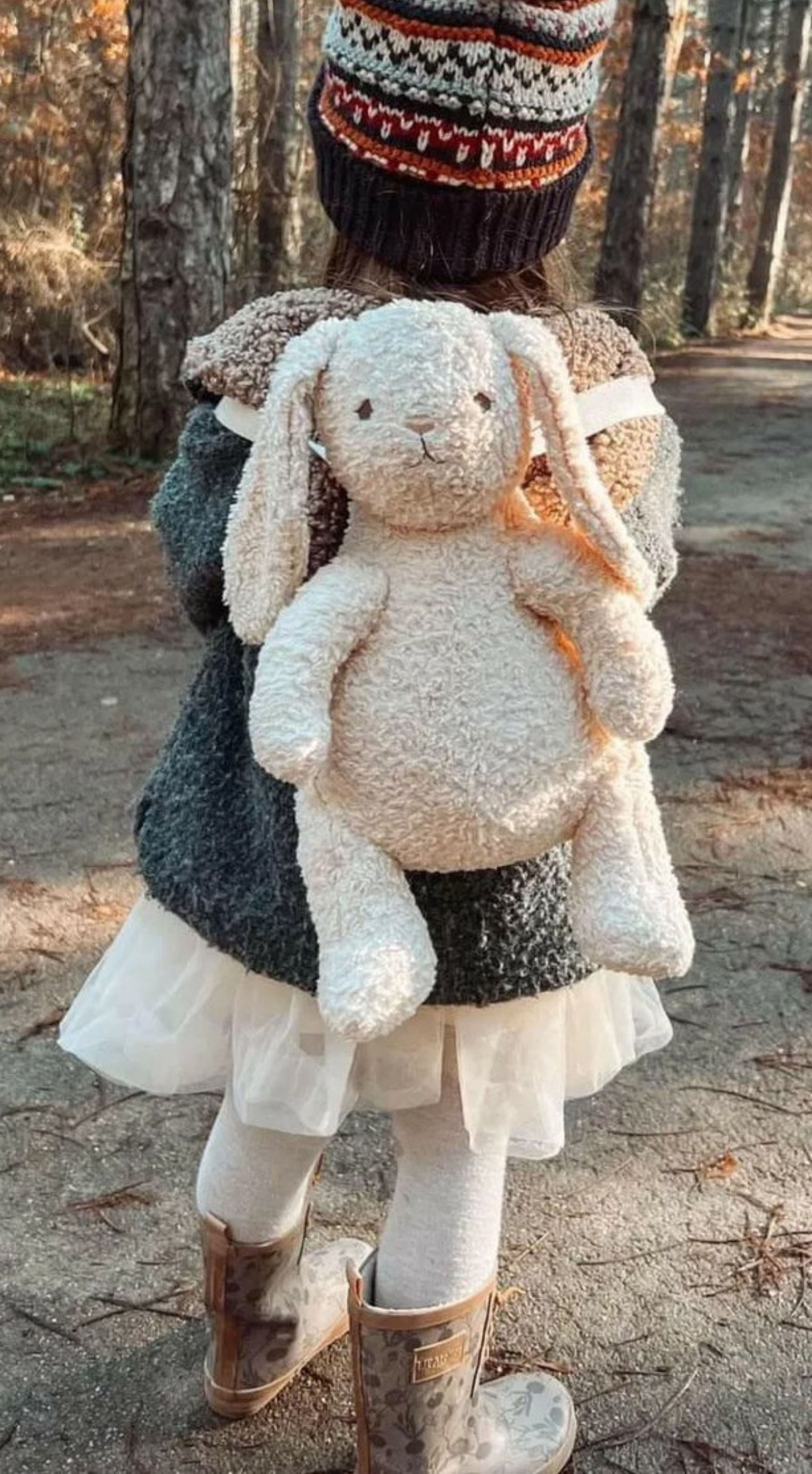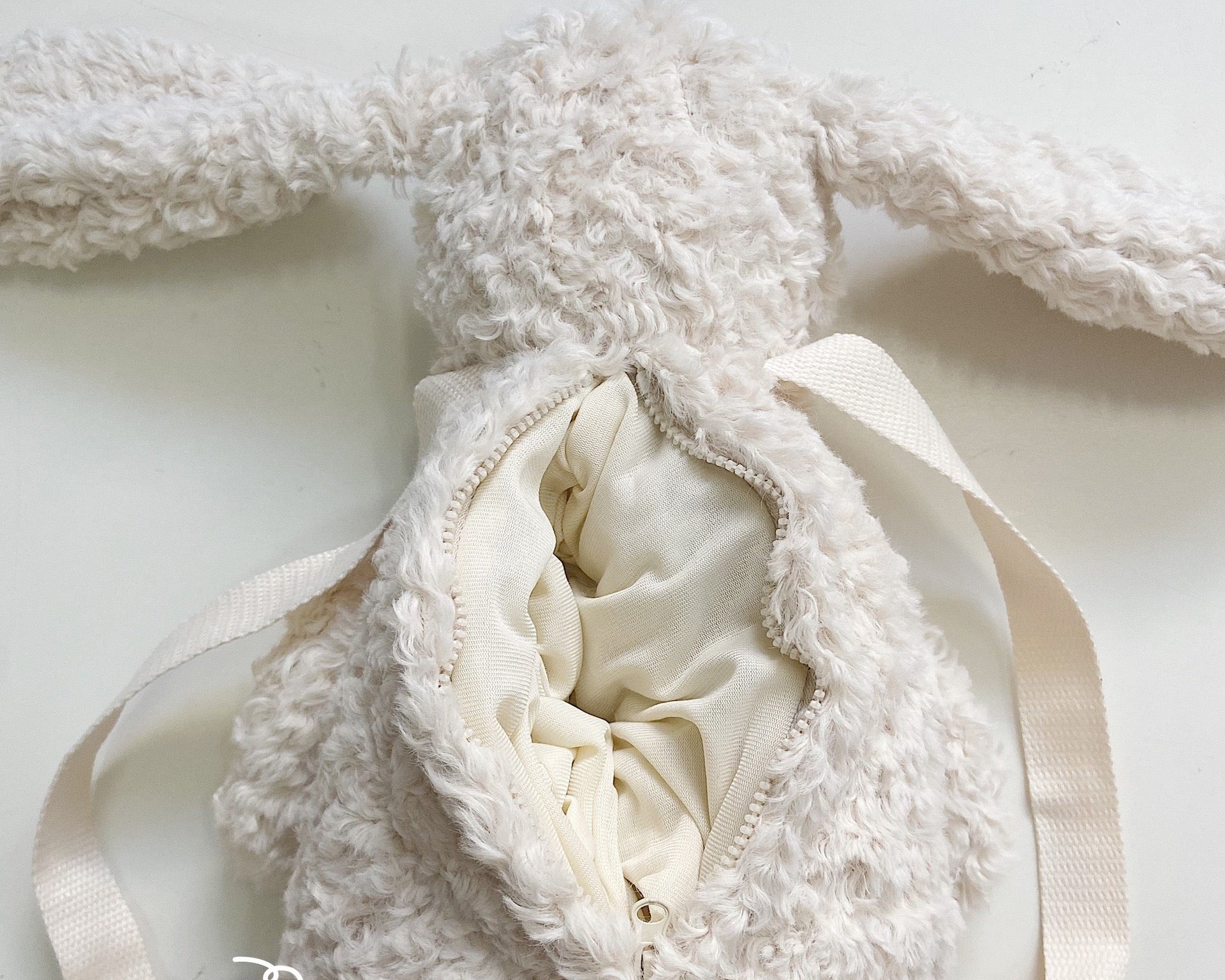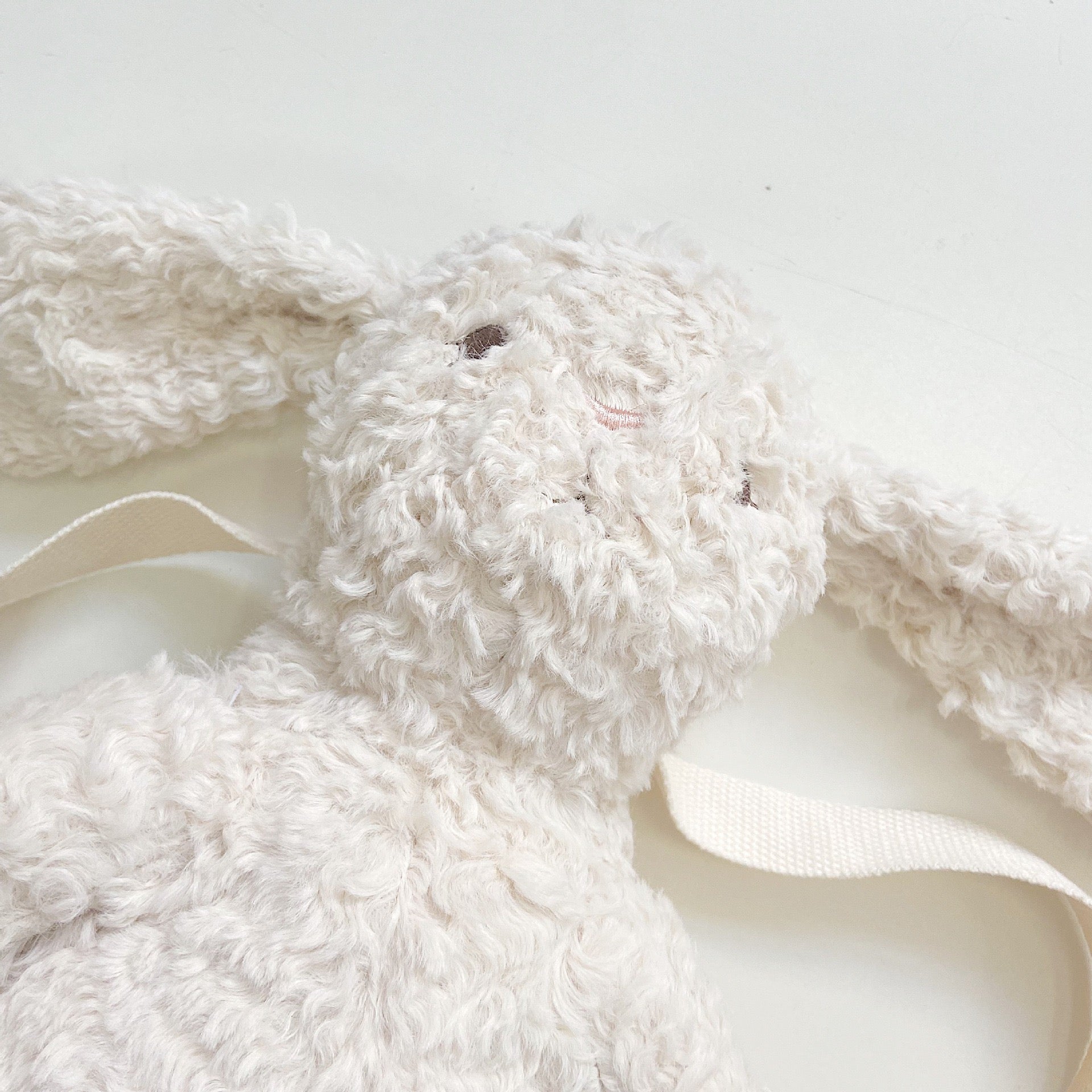 This adorable bunny-shaped backpack is expertly crafted and ready to accompany your little one on amazing escapades. It features adjustable straps for cozy wear and a practical hanger loop and zippered pocket for secure storage. Made from luxurious organic sherpa and filled with recycled polyester, it offers 21cm X 20cm X 34cm of pocket-perfect space.