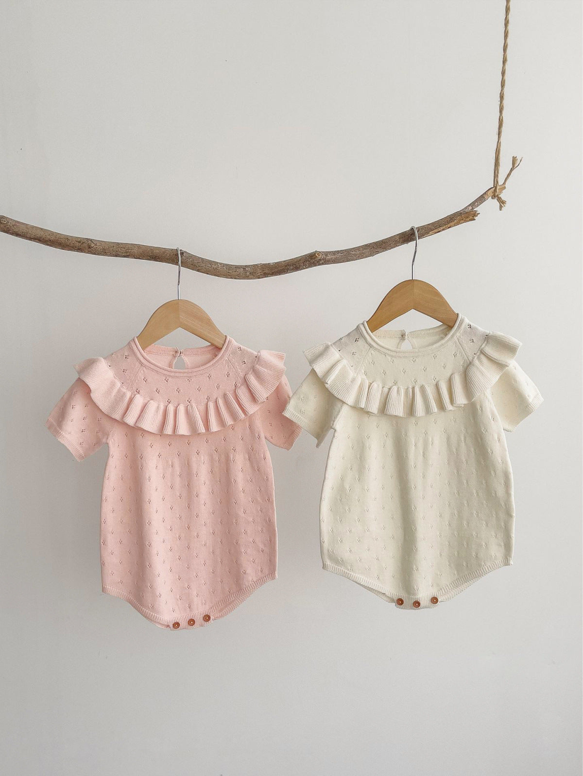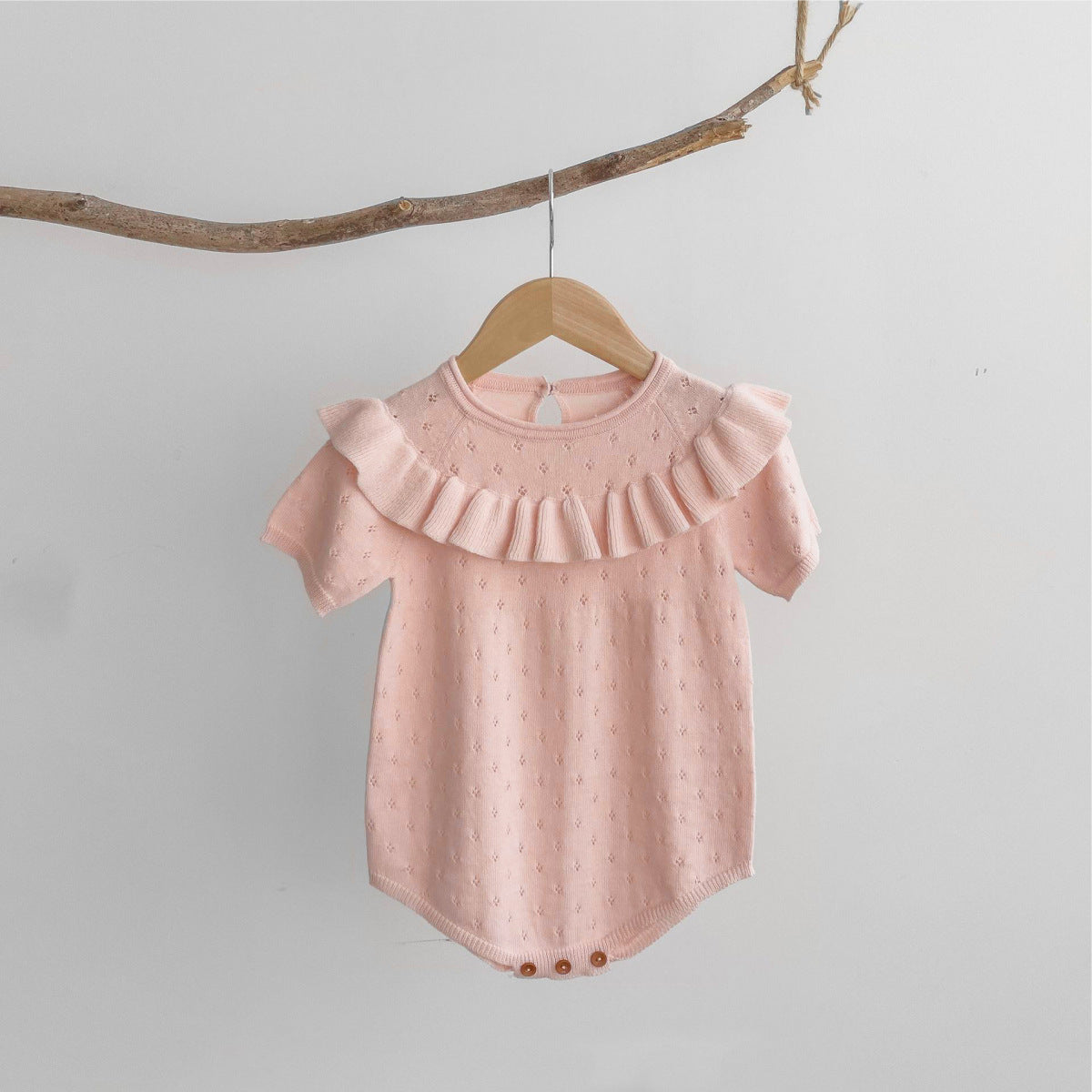 Pointelle Ruffle Knit Romper- CLEARANCE