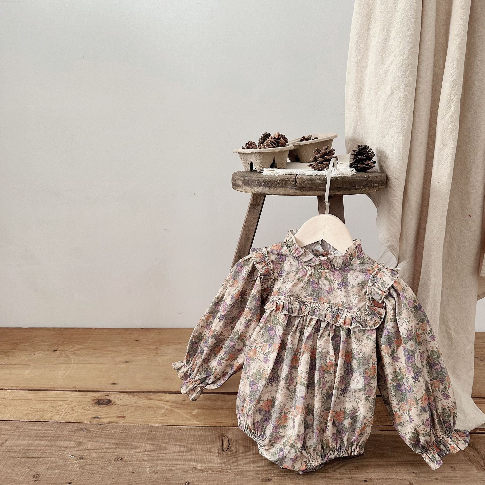 Embrace old world charm with our Lightweight Victorian Nordic Blossom Romper, featuring an elegant floral print inspired by vintage Nordic designs. Perfect for special moments, this romper is the epitome of trendy baby clothes, that combines beauty with practicality.